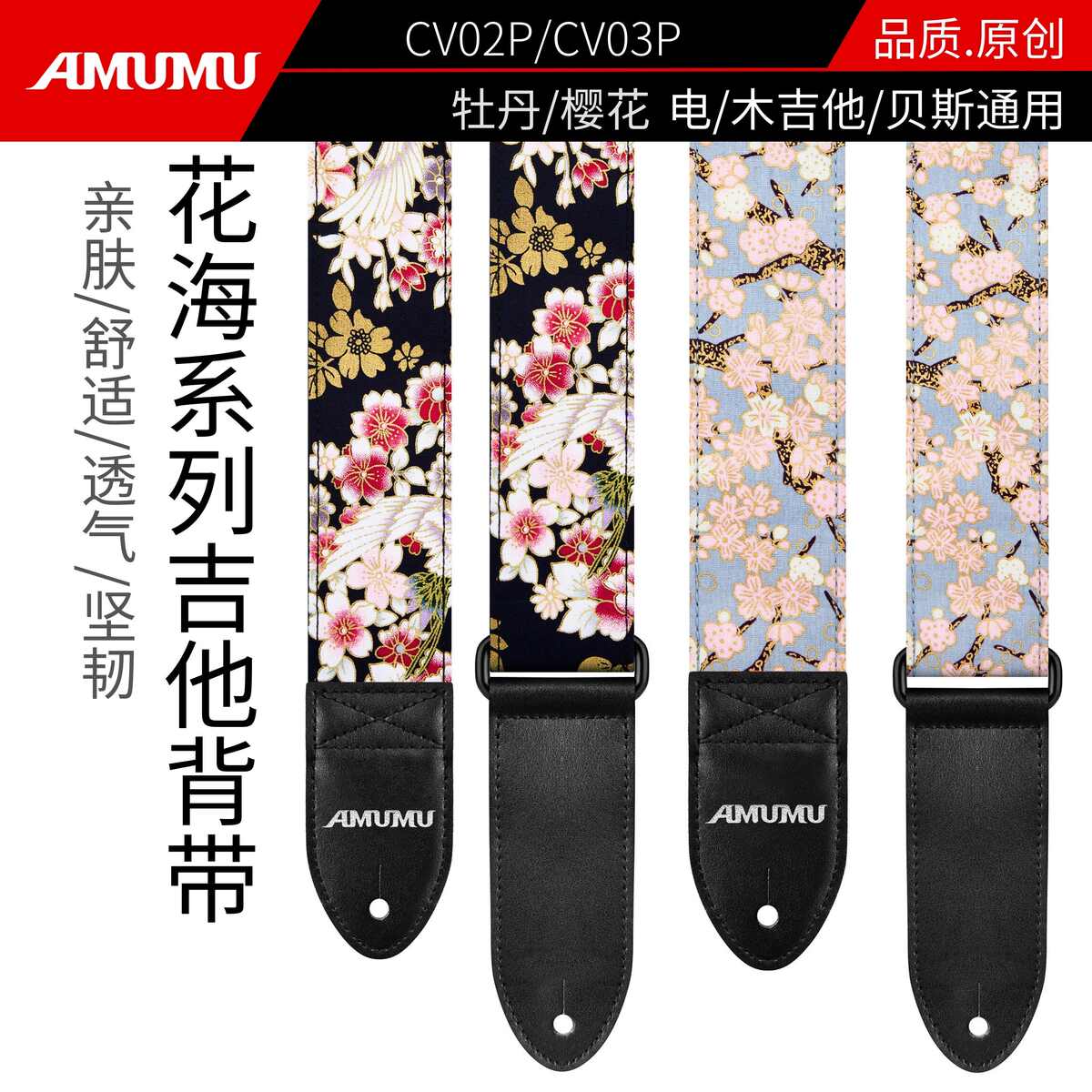 AMUMU阿木木吉他背帶民謠彩印花海貝司斜挎帶電吉他琴帶樂器配件