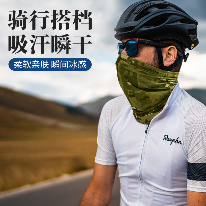 戶外運動防曬冰絲頭巾釣魚魔術面巾圍脖騎行面罩運動頭套冰絲圍脖