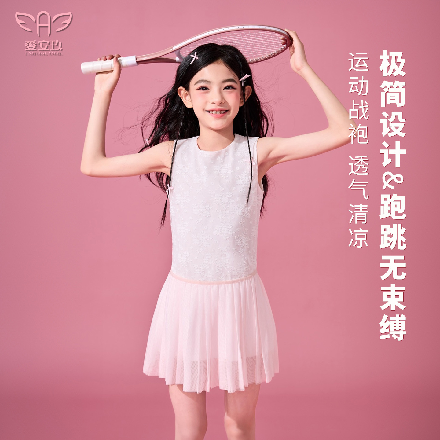 愛安玖女童無袖連衣裙夏季運動裙子兒童網球服透氣清涼排汗速干款