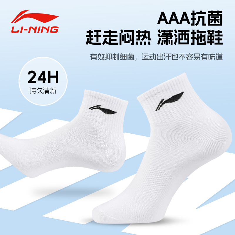 李寧運動襪男夏季透氣網球襪籃球襪短筒跑步襪專業訓練羽毛球襪白