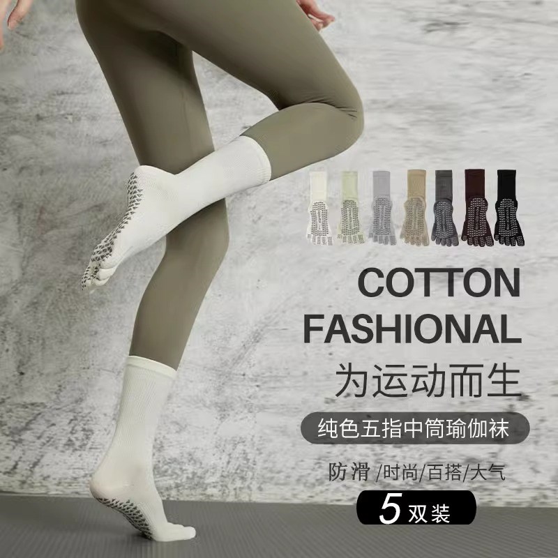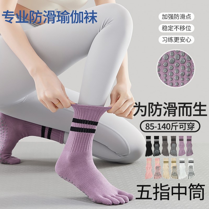 秋冬瑜伽襪子防滑專業女中筒五指襪普拉提L室內運動專用長筒分趾