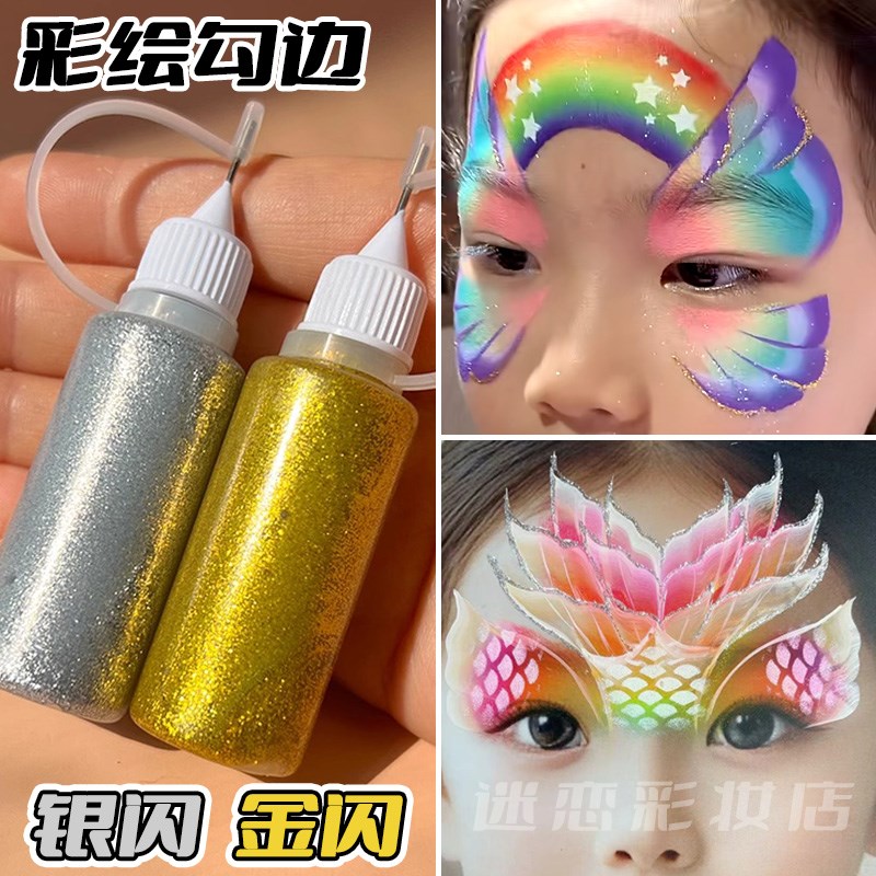 兒童面部彩d繪銀色金色勾邊勾金線舞臺妝亮晶晶眼妝專用閃粉液亮
