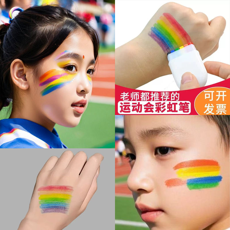 人體彩繪筆臉部彩虹條運動會幼兒園活動兒童面部涂鴉啦啦隊臉彩棒