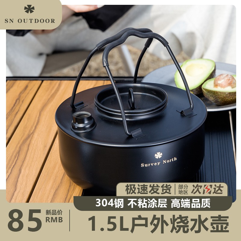 戶外露營304不銹鋼明火燒水壺1.5L野營自駕游裝備煮水泡茶咖啡壺