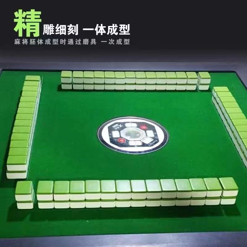 40#手打麻將牌高顏值翡翠色家用玉白手搓麻雀牌中大號144張
