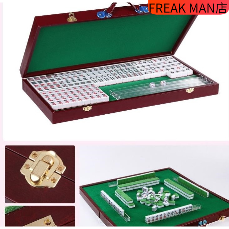仿古麻將盒裝英文出國麻將旅游宿舍麻將仿古皮盒中國風送老外禮物