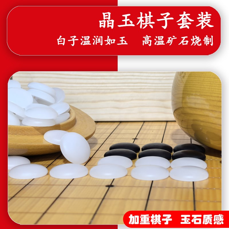 珍瓏石晶玉圍棋棋盤套裝兒童玉石黑白棋子象棋Q實木棋盤非云子圍