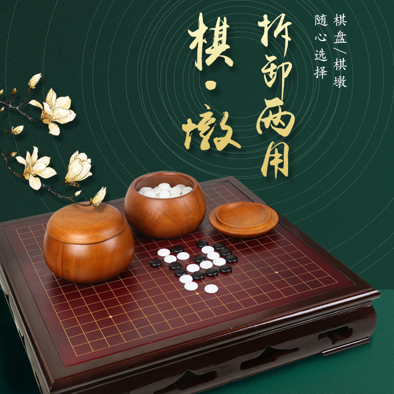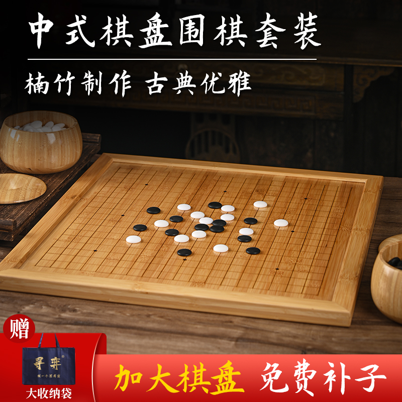 御圣楠竹圍棋棋盤套裝成人象棋全實木兒童學生初學者雙面兩用棋具
