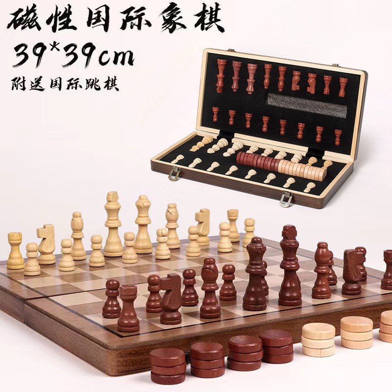 磁吸國際象棋大號兒童可折疊高檔實木棋盤K學生益智比賽西洋棋套