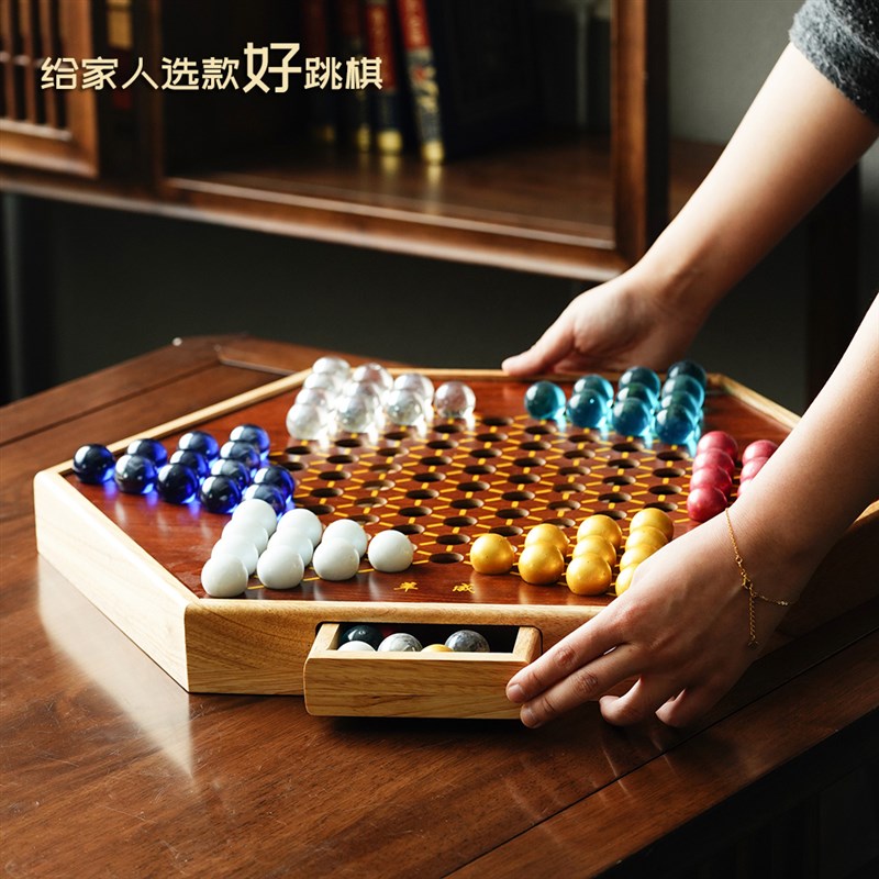 御圣跳棋玻璃球兒童益智小學生跳棋成人大號高檔木質跳棋彈珠棋盤