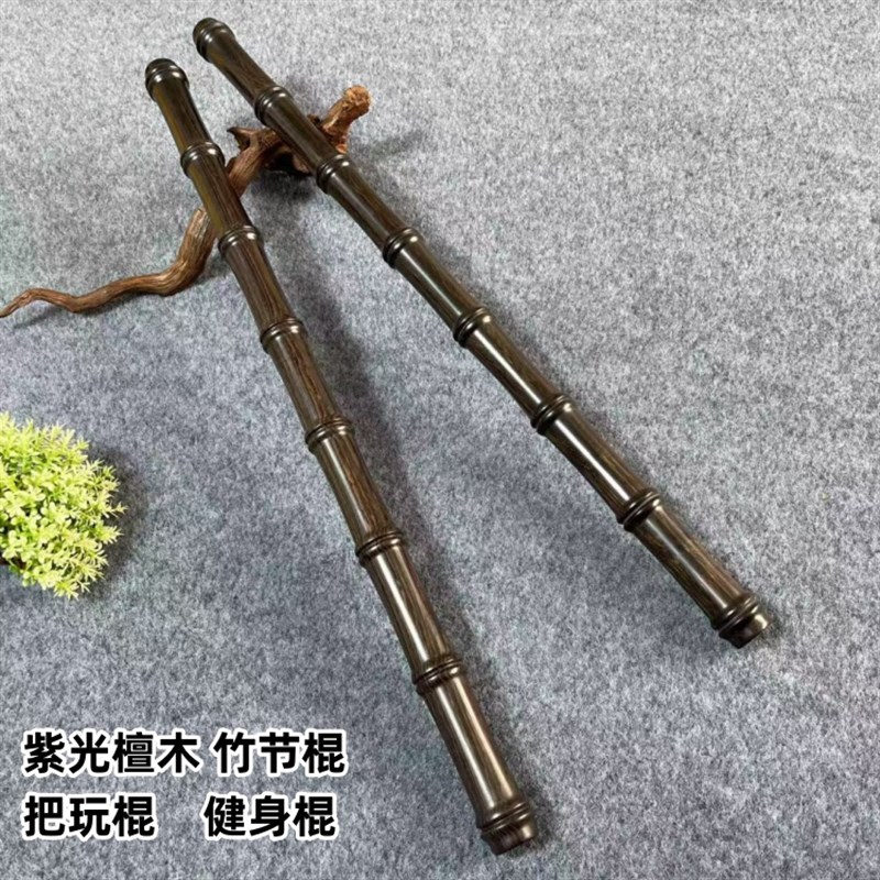 紫光檀木竹節太極棍實木文玩棍車載防身棍手把棍武術棍竹節把玩棍