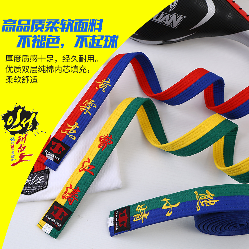 跆拳道腰帶繡字道帶定制帶子白黃帶黃綠帶綠藍帶紅黑帶兒童色帶綁