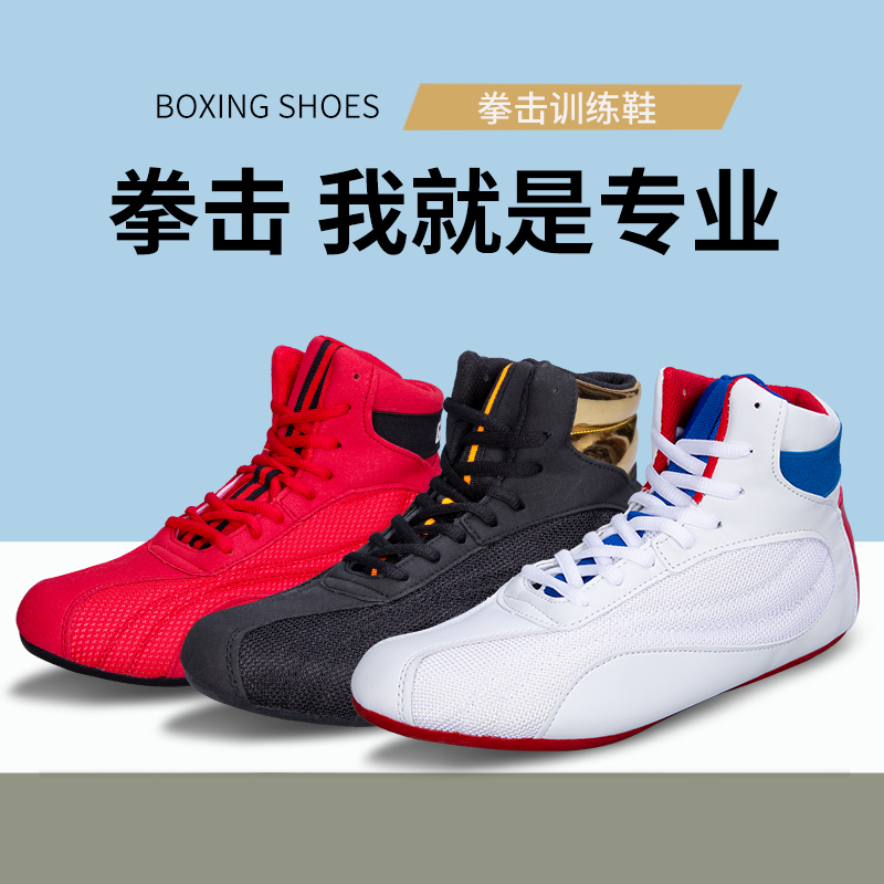 專業拳擊摔跤鞋高幫成人散打搏擊格斗比賽室內健身訓練鞋泰拳低幫