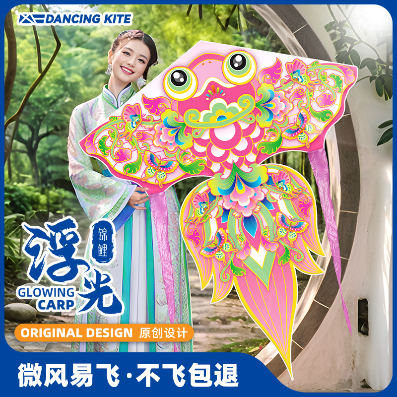 2025新款網紅卡通浮光錦鯉粉風箏金魚微風易飛兒童手持大人專用