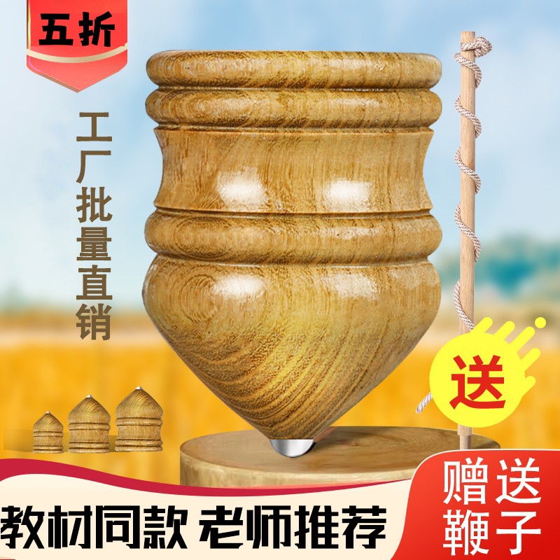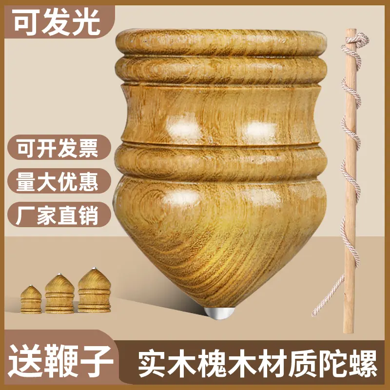 Wooden Top 木陀螺木制健身實木發光陀螺玩具老式成人大號專用鞭