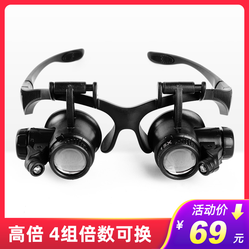 頭戴式放大鏡眼鏡型高倍高清維修用帶燈鐘表手表工具頭帶1000