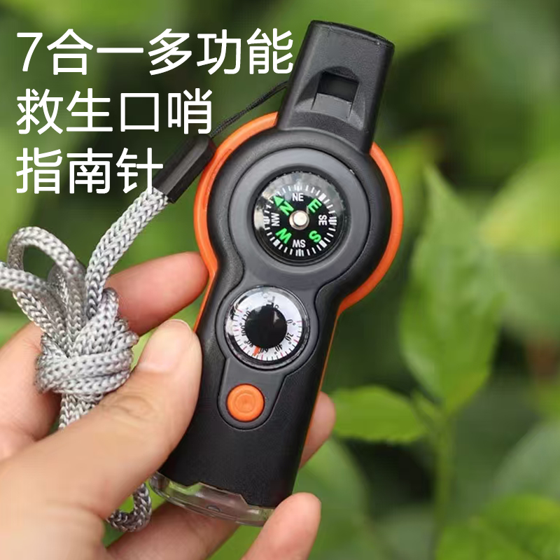 三合一指南針救生哨溫度計戶外多功能求生口哨子便攜高頻哨帶掛繩