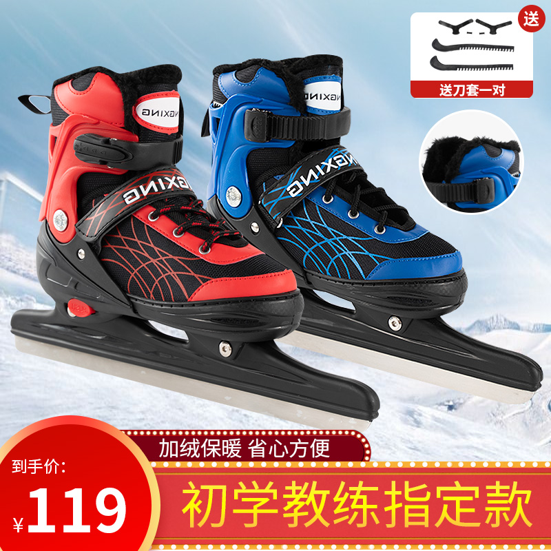 動感冰刀鞋兒童可調碼速滑刀成人專業滑冰鞋毛絨保暖初學真冰男女