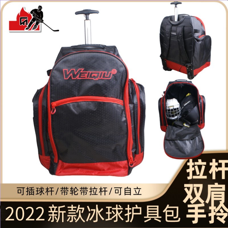 緯球冰球護具包裝備包兒童帶輪立式包可I背成人收納拉桿箱帶輪全