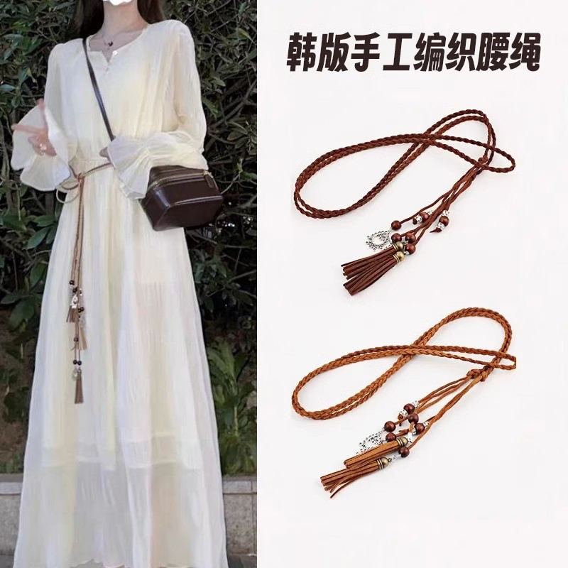 波西米亞風裝飾腰帶女士百搭連衣裙子綁帶繩編織腰鏈腰繩打結系帶