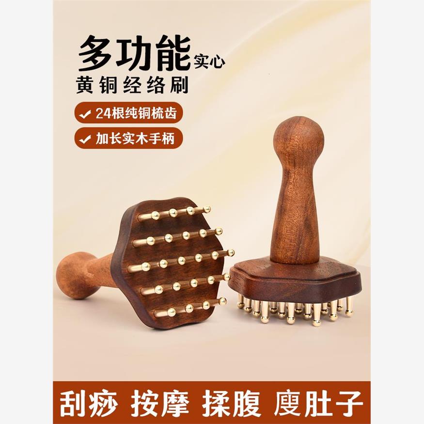 黃銅按摩梳頭部按摩刷全身經絡疏通神器按摩梳經絡刷揉腹頭部刮痧