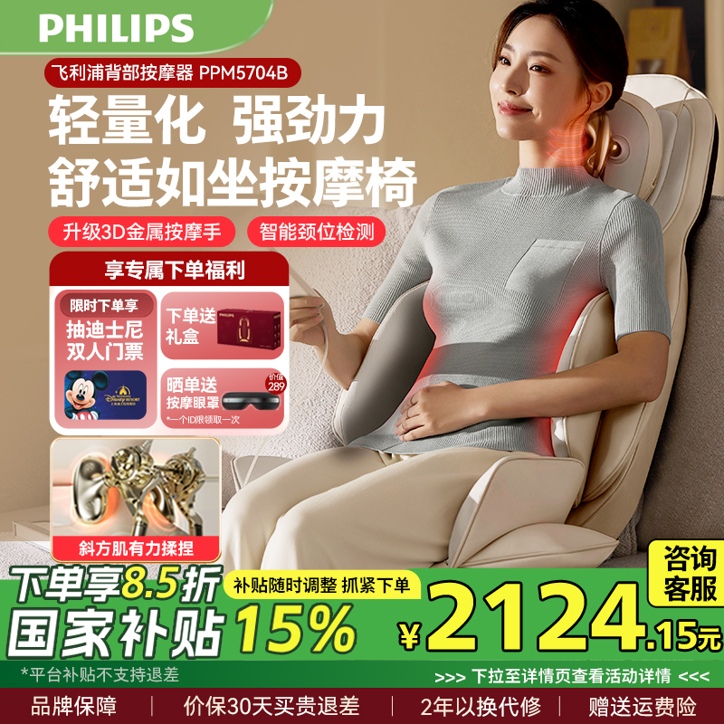 飛利浦珍可靠可移動按摩椅按摩靠墊床墊家用全身按摩儀男女生禮物