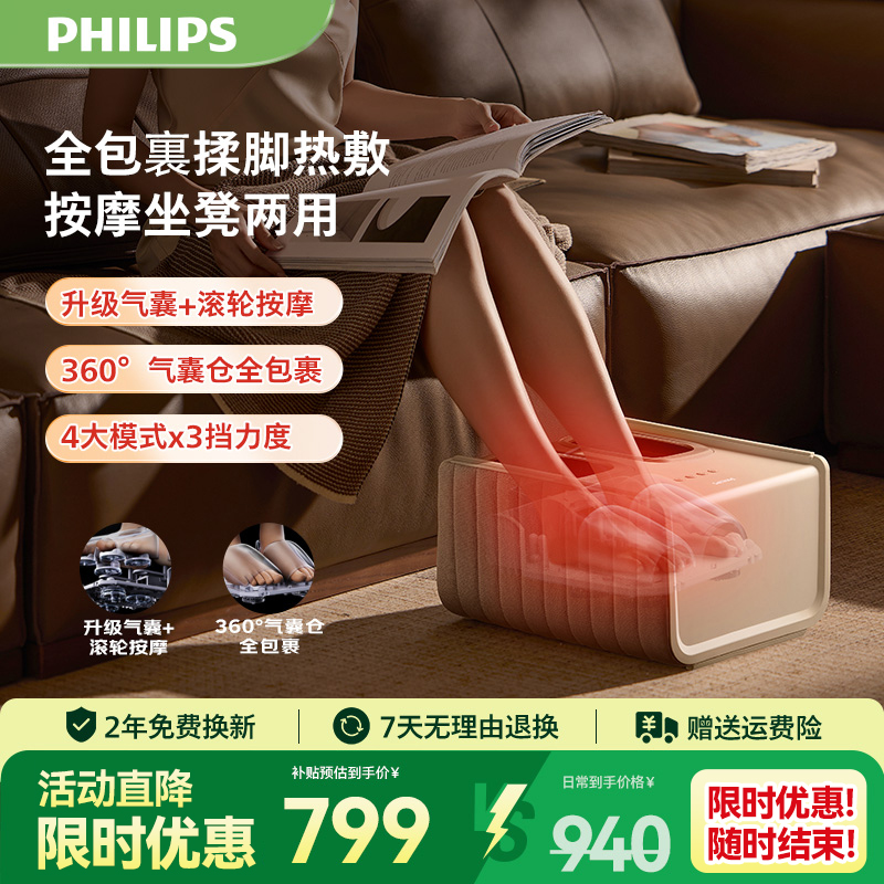 飛利浦足療機腳部按摩器全自動揉捏氣囊加熱腳底足底足部按摩儀