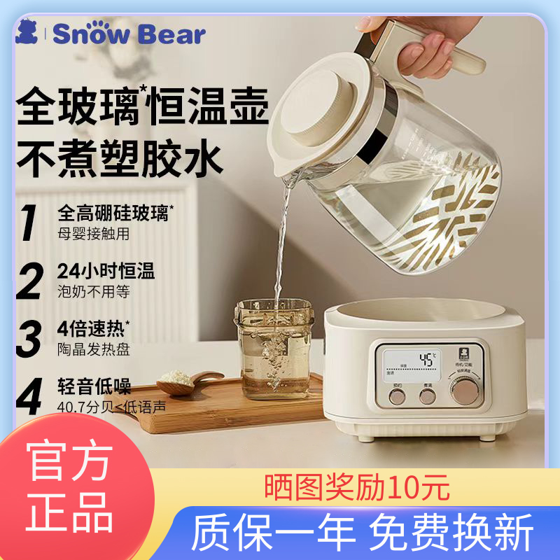 SnowBear小白熊全玻璃恒溫熱水壺泡沖奶新生嬰兒專用家用燒水調奶