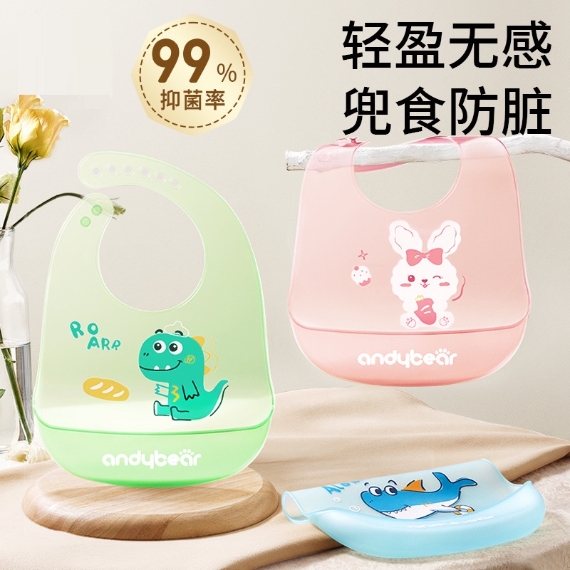 寶寶吃飯圍兜硅膠超薄軟防水簡約兒童圍嘴輔食飯兜夏季嬰兒口水兜