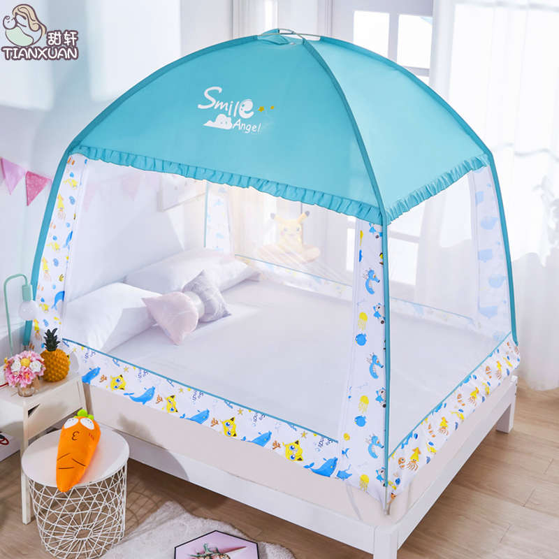蚊帳1.5m床加密有底蒙古包兒童卡通寶寶防摔1.8米床1.2米拉鏈紋賬