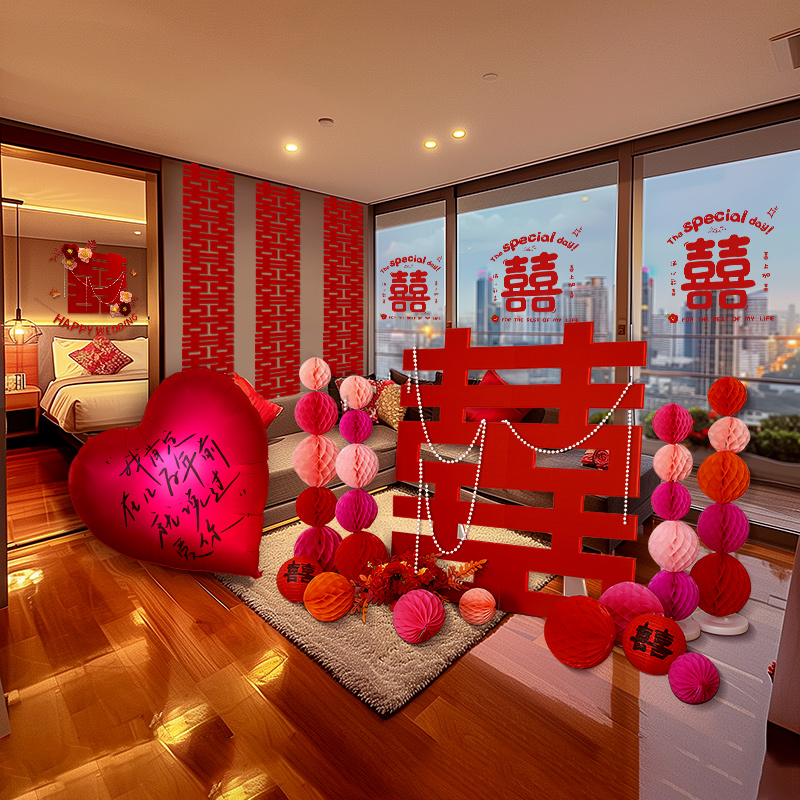 婚房布置婚禮新房裝飾客廳喜字拉花女方臥室簡約背景墻結婚用品