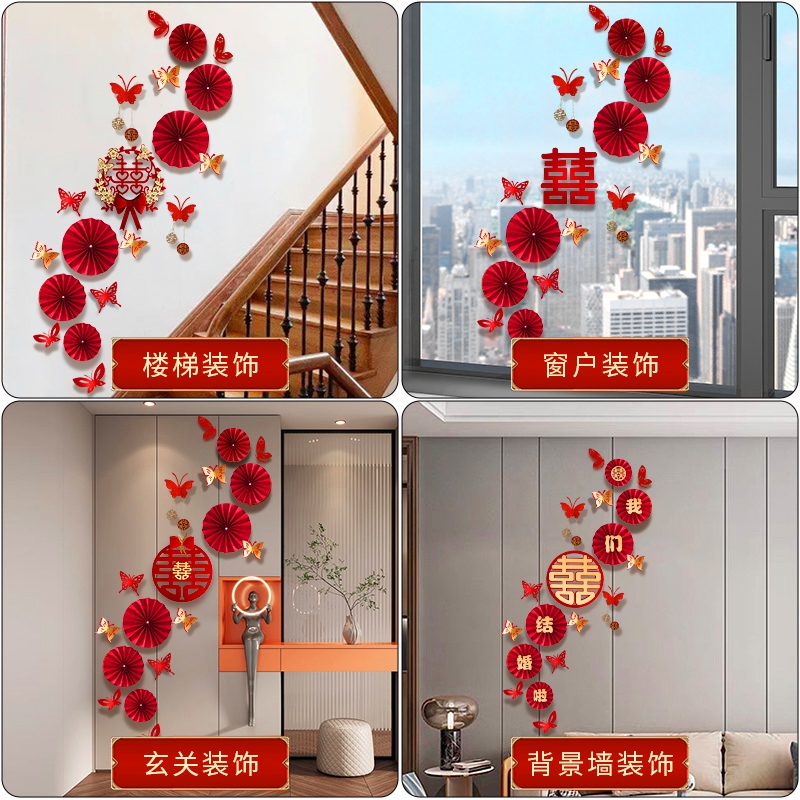 結婚布置婚房裝飾套裝新房男方女方高級感拉花樓梯扶手房間客廳喜