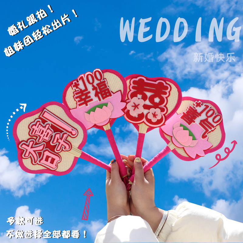 結婚伴娘多巴胺小團扇網紅蒲扇新娘接親婚禮游戲拍照道具中式扇子