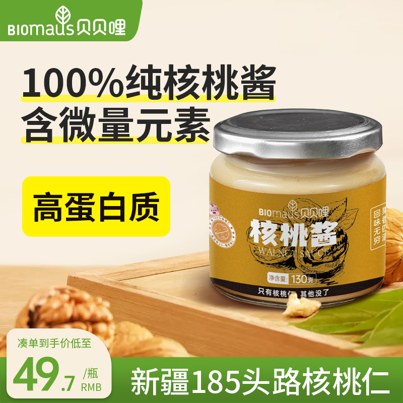 BIOmaus貝貝哩純核桃醬鮮核桃泥寶寶調味料拌飯送嬰兒輔食譜0鹽