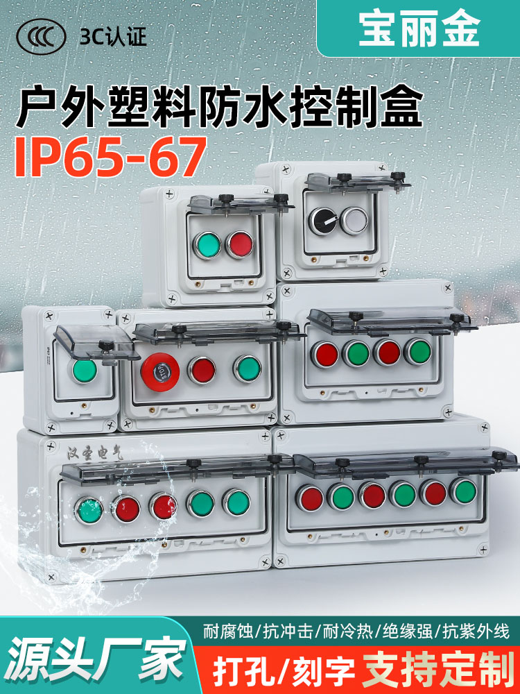 室外防水按鈕開關盒啟動急停復位按鈕開關盒保護箱復位接線盒