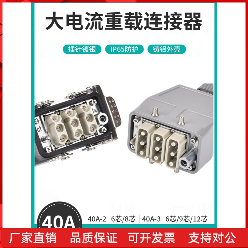 速發重載連接器40A大電流大功率4芯6芯8芯芯12芯工業防水電連接插