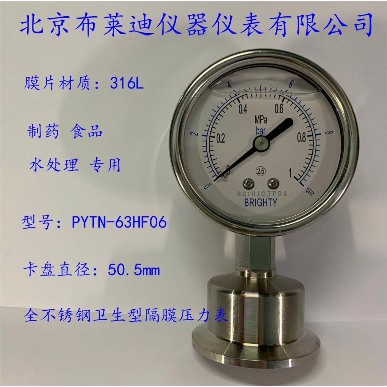北京布萊迪壓力表PYTN63HF6衛生型隔膜耐震壓力表 卡盤直徑:50.5