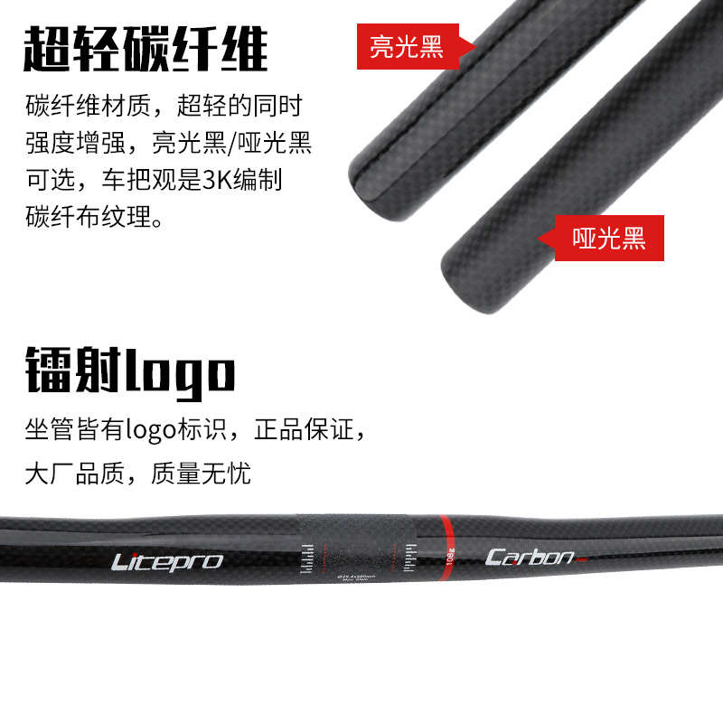 Litepro折疊自行車全碳纖維超輕車把小燕把25.4口徑580MM把橫車把