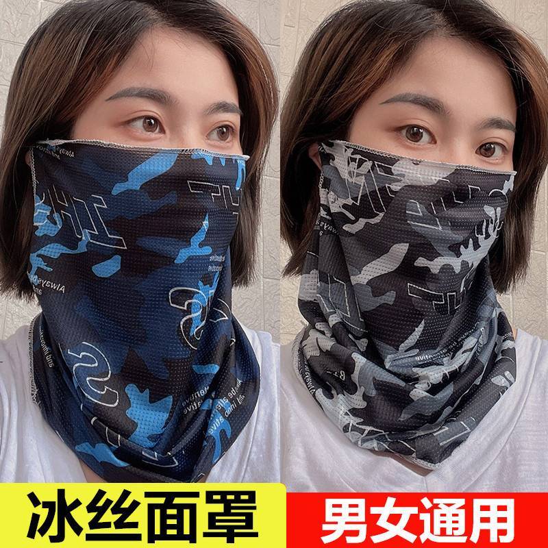 夏防曬騎行面罩防紫外線護臉掛耳護頸冰絲頭巾女口罩遮陽跑步圍脖