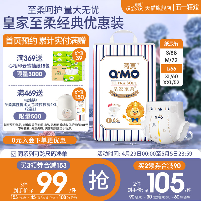 奇莫皇家云柔紙尿褲NB-XXL尿不濕嬰兒超薄柔軟透氣大吸量防漏干爽