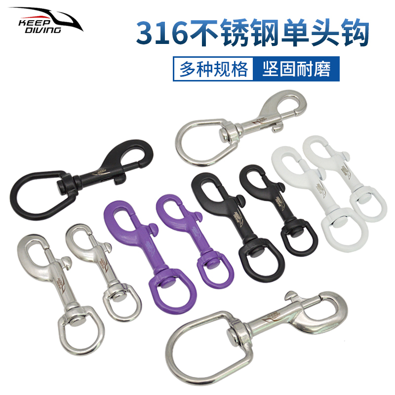 316不銹鋼水肺技術潛水單頭鉤彈簧扣象拔掛鉤側掛裝備BCD配件黑色