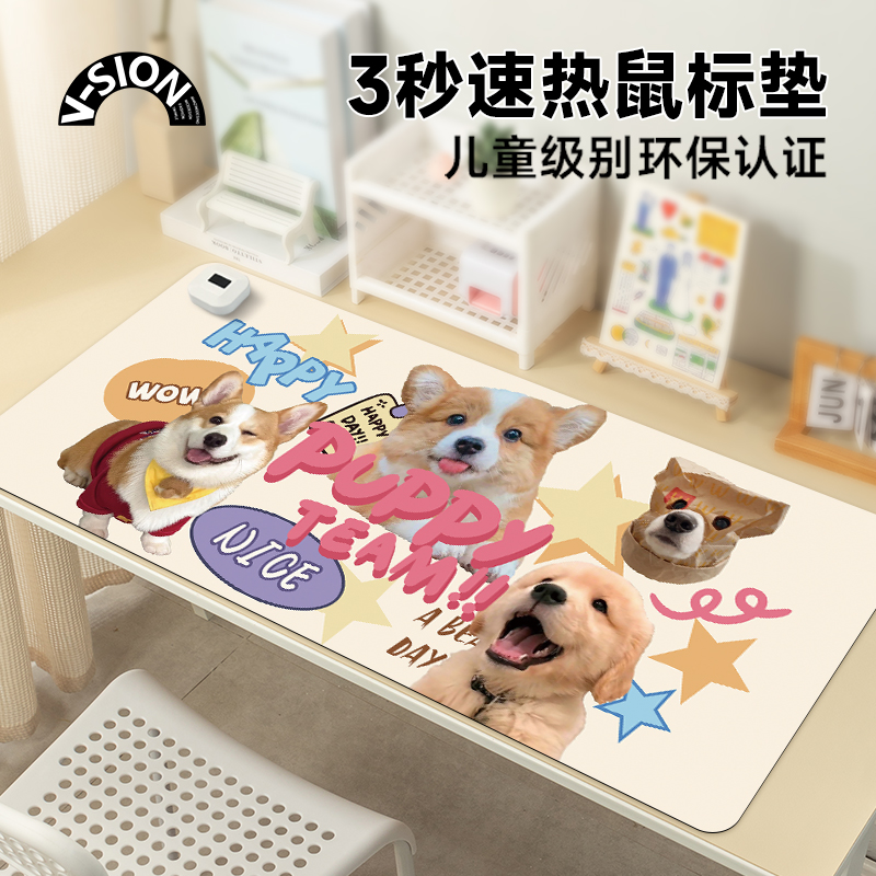 V-SION 涂鴉小狗加熱鼠標墊超大發熱暖桌墊辦公室墊子桌面電腦鍵