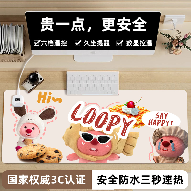 可愛露比加熱鼠標墊超大小海貍loopy發熱暖桌墊辦公室墊子usb桌