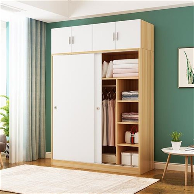 洛亞妮 衣柜推拉門實木質衣櫥臥室簡易收納大衣柜子 淺胡桃色+白