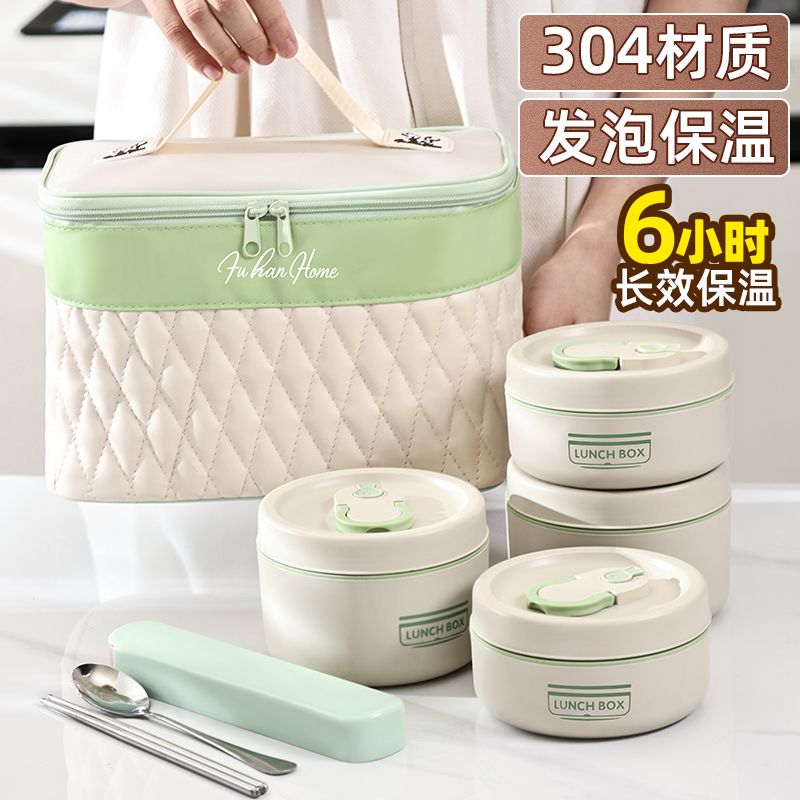 304不銹鋼保溫飯盒便攜上班族便當盒獨立分裝層層密封帶飯盒碗