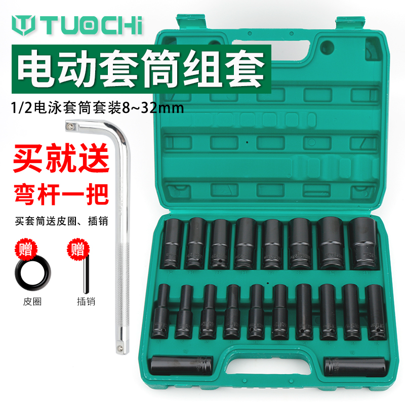 電動扳手套筒套裝加長六角r扳手汽修機修專用鋰電鉆套筒組套8-32m