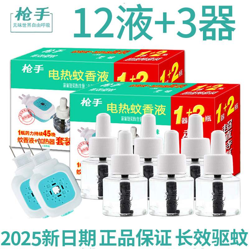 槍手電熱蚊香液孕婦嬰兒童驅蚊插電式無味驅蚊電蚊香器補充液家用