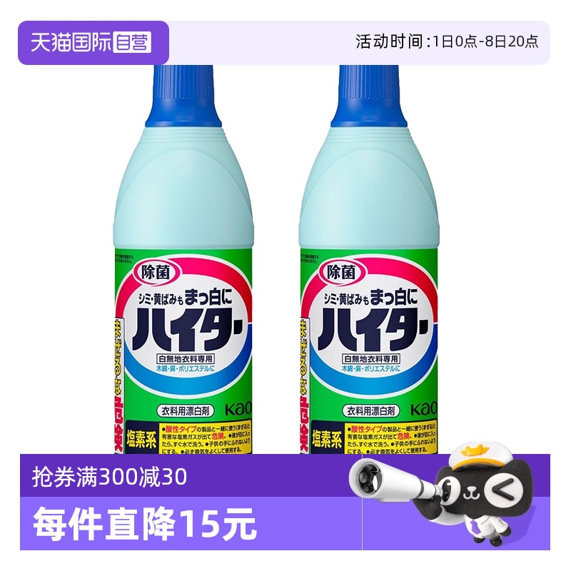 【自營】進口花王 增白去漬漂白劑白色衣服護色強效去黃600ml*2瓶