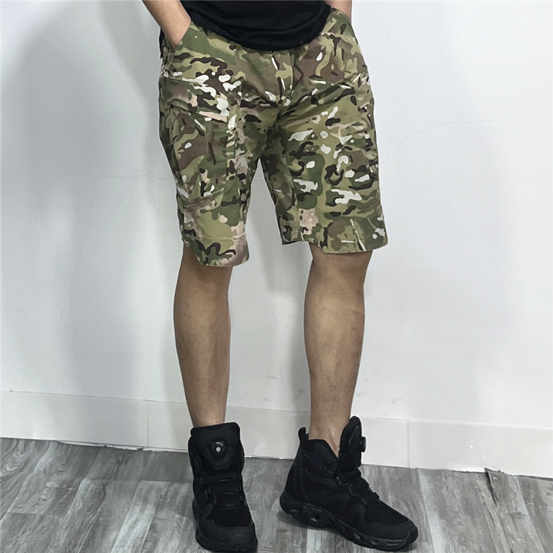 夏男戶外橘皮紋四面彈戰術短褲迷彩工裝多口袋五分褲透氣防水直筒