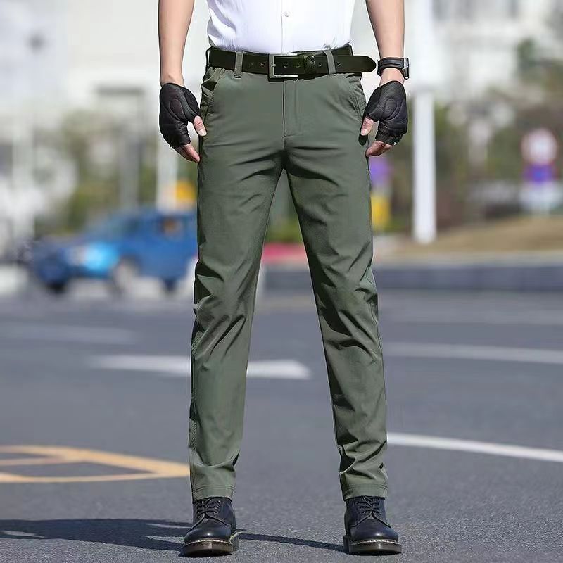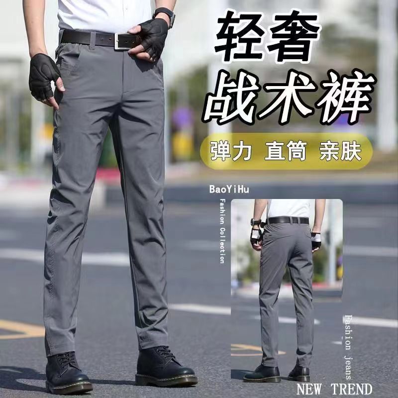 夏季戰術速干休閑褲男士百搭彈力修身直筒商務抗皺薄款松緊腰褲子
